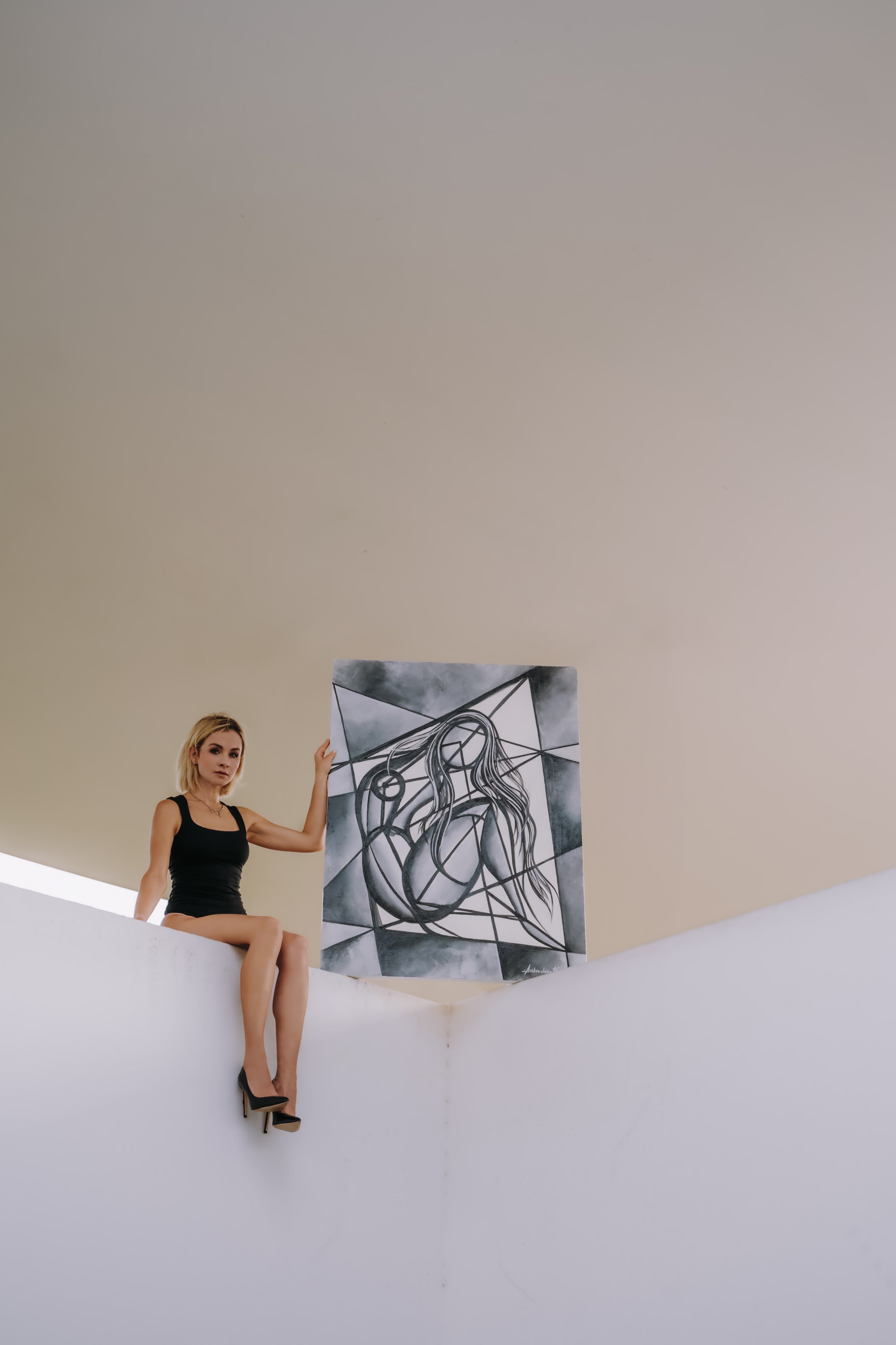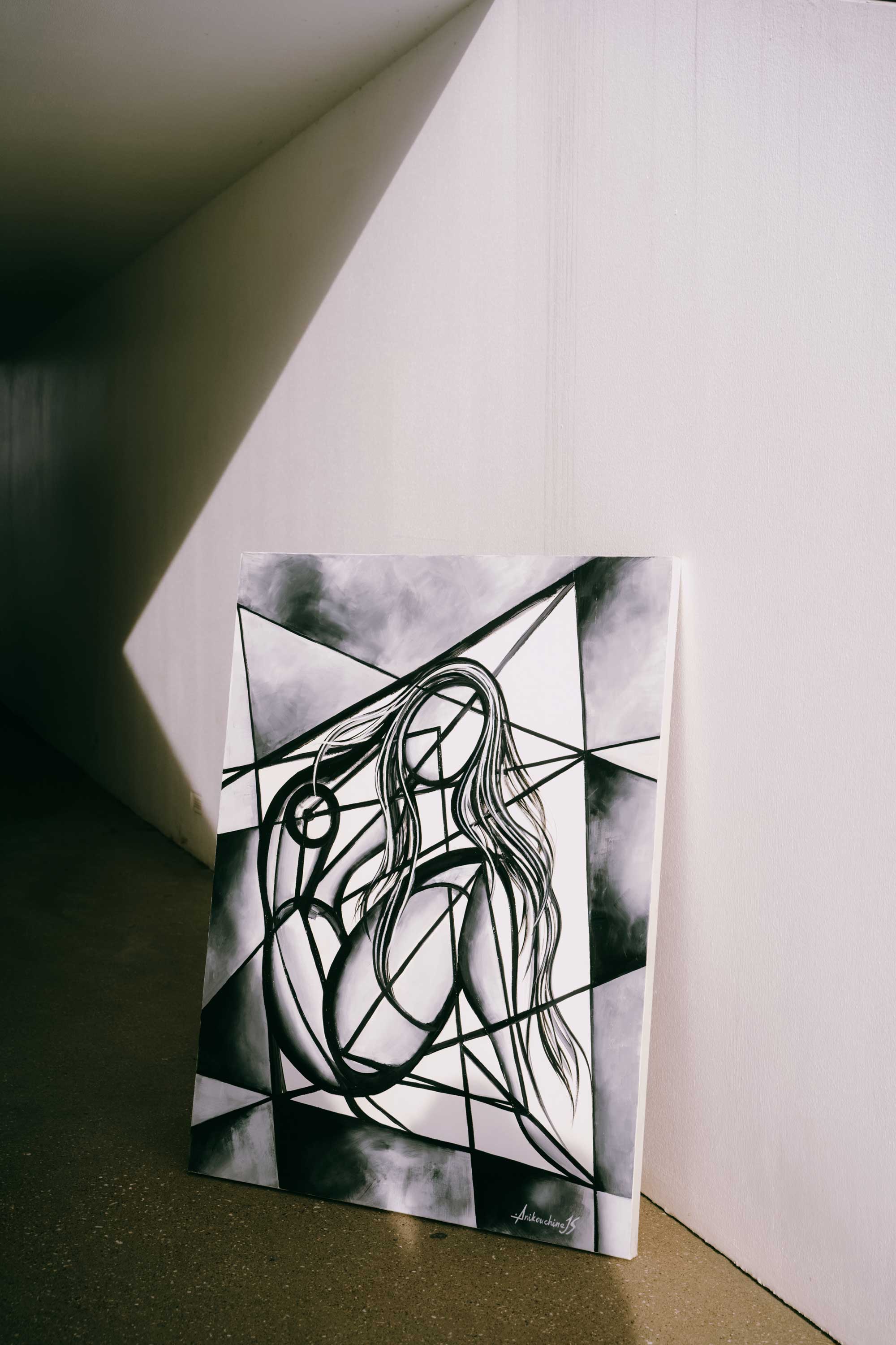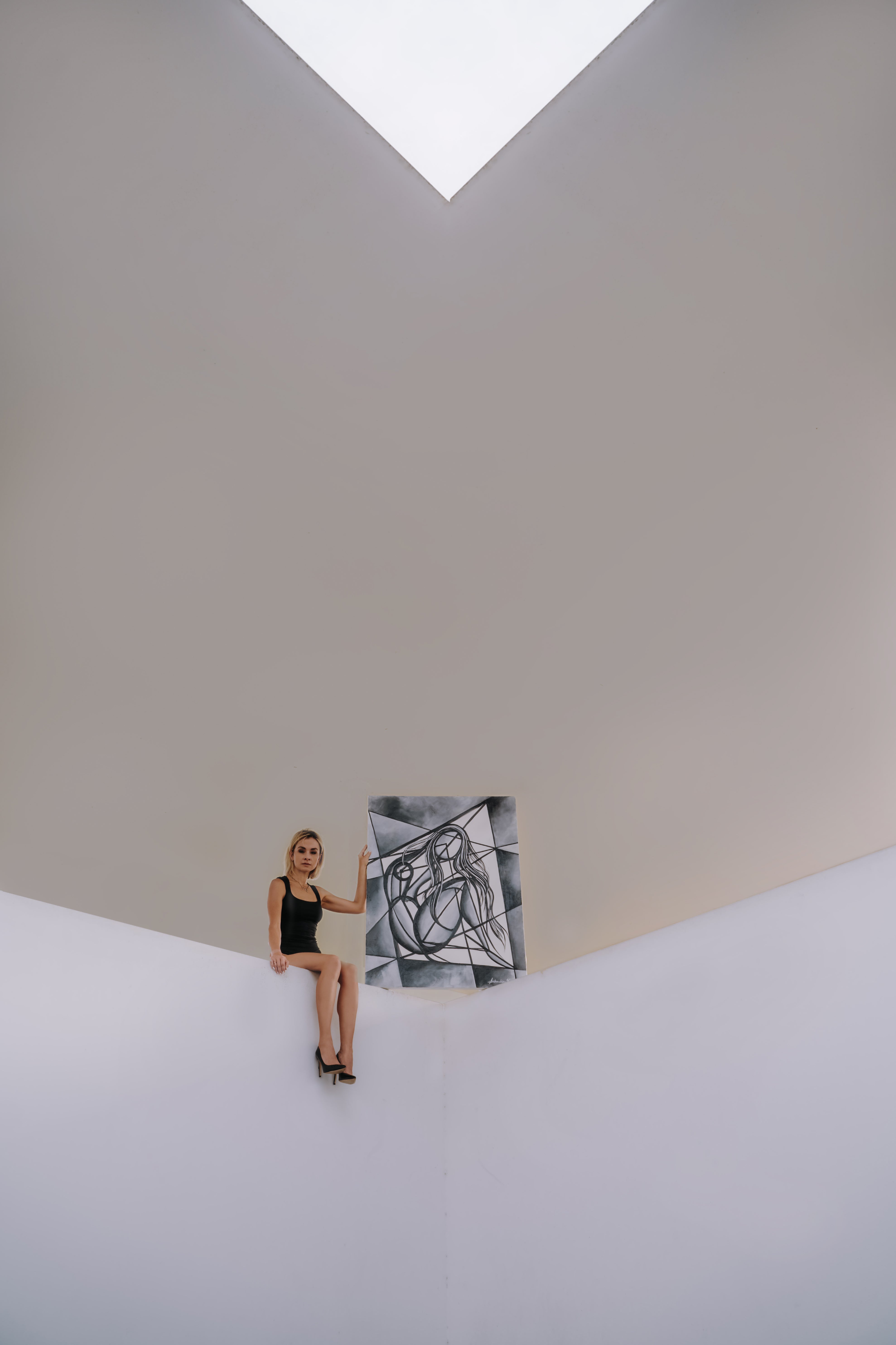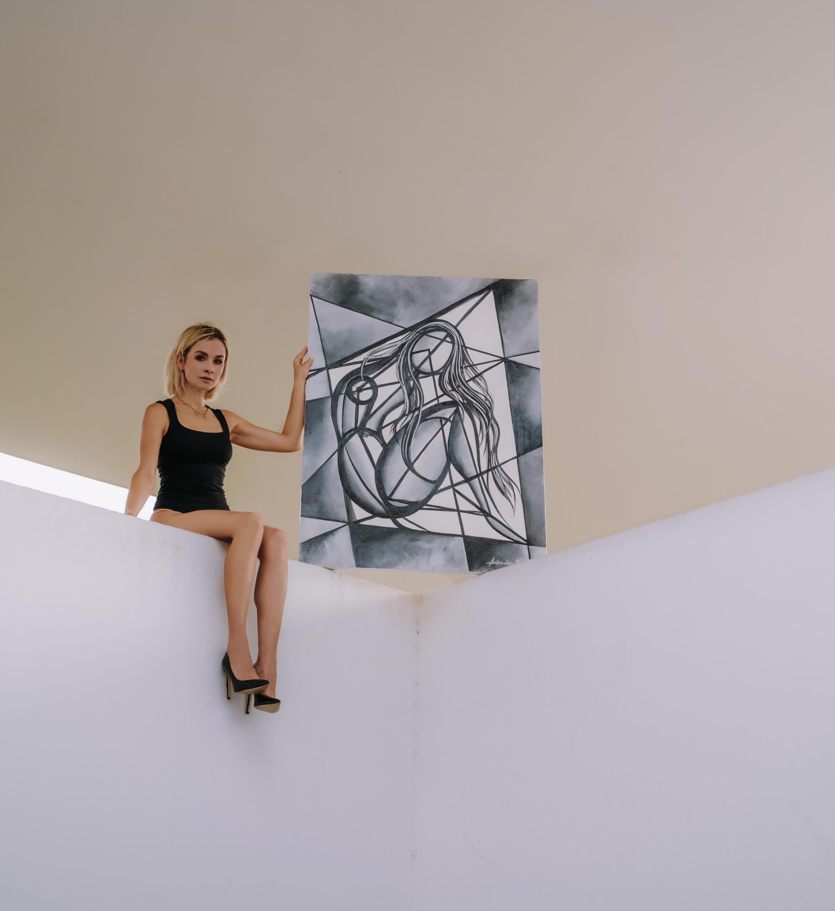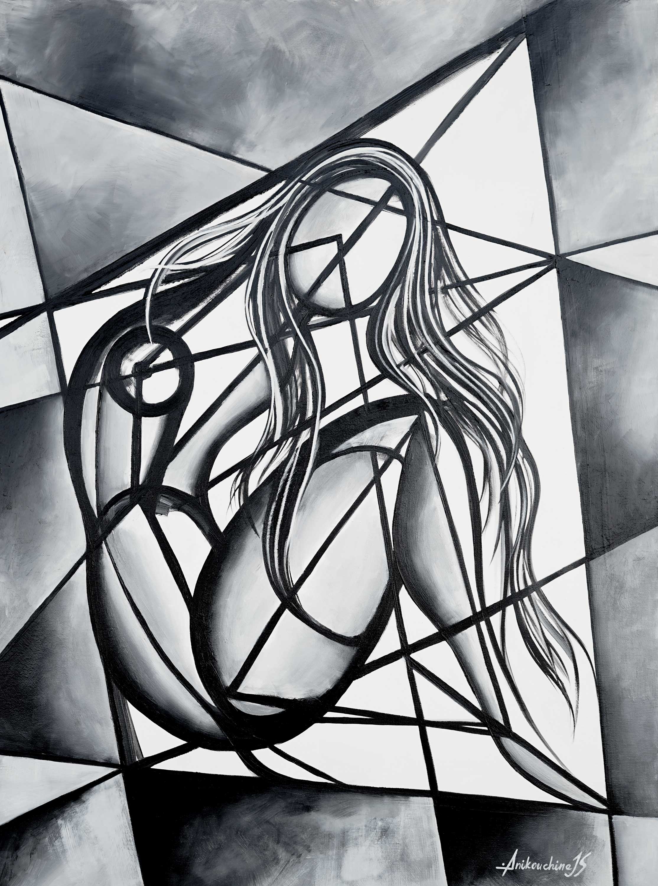 The Beginning captures the essence of origin where soft curves emerge from sharp geometry, chaos transforms into new life. The woman’s flowing hair suggests movement and life, while her facelessness allows her to embody the universal rather than the individual. She becomes an archetype of creation, possibility, and renewal. The fractured background can be seen as both confinement and foundation, evoking the duality of beginnings: chaos and order, fragility and strength. Through its balance of geometry and curves, The Beginning speaks to the birth of identity, the start of a journey and the unfolding of something yet unknown.