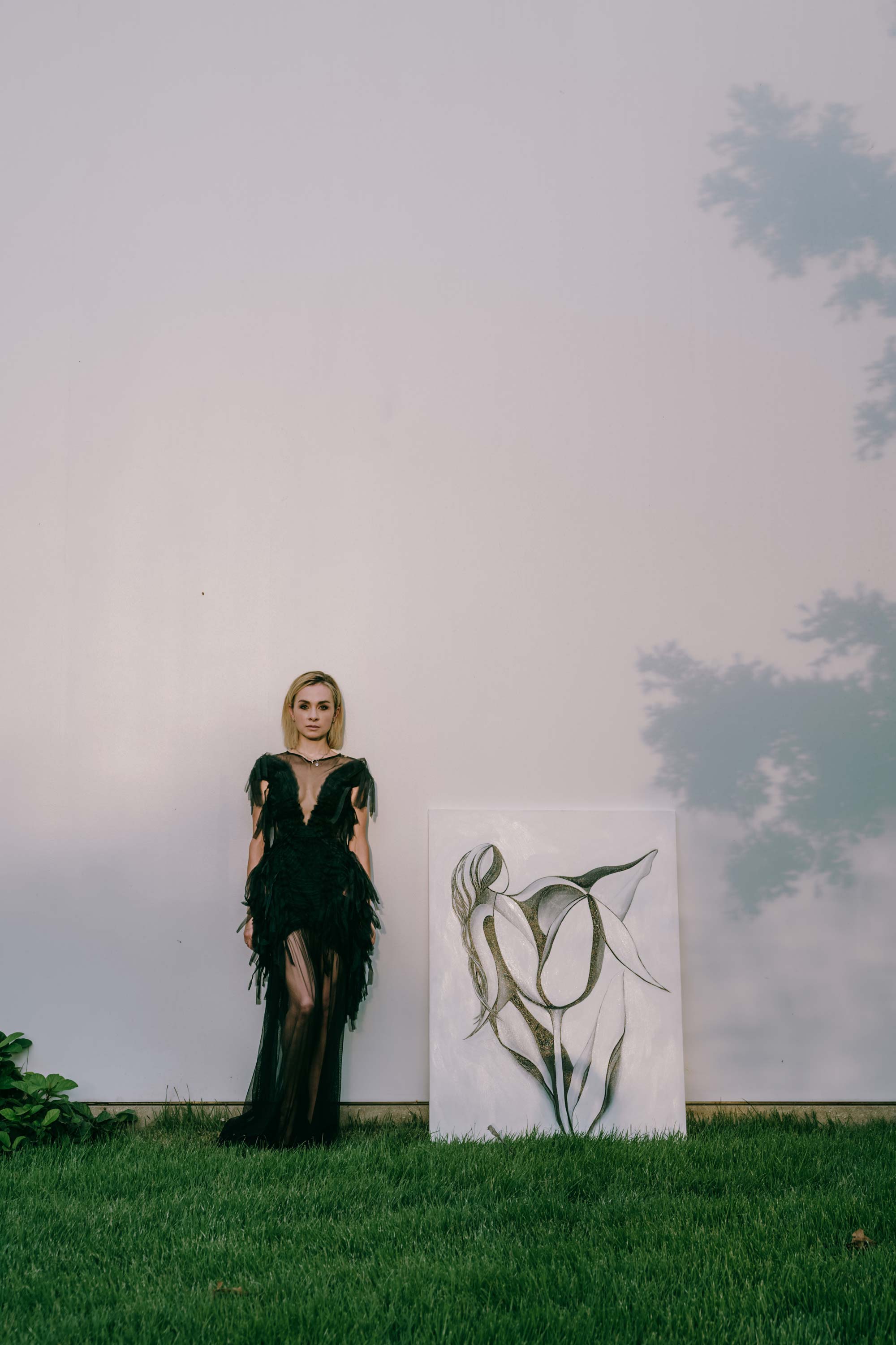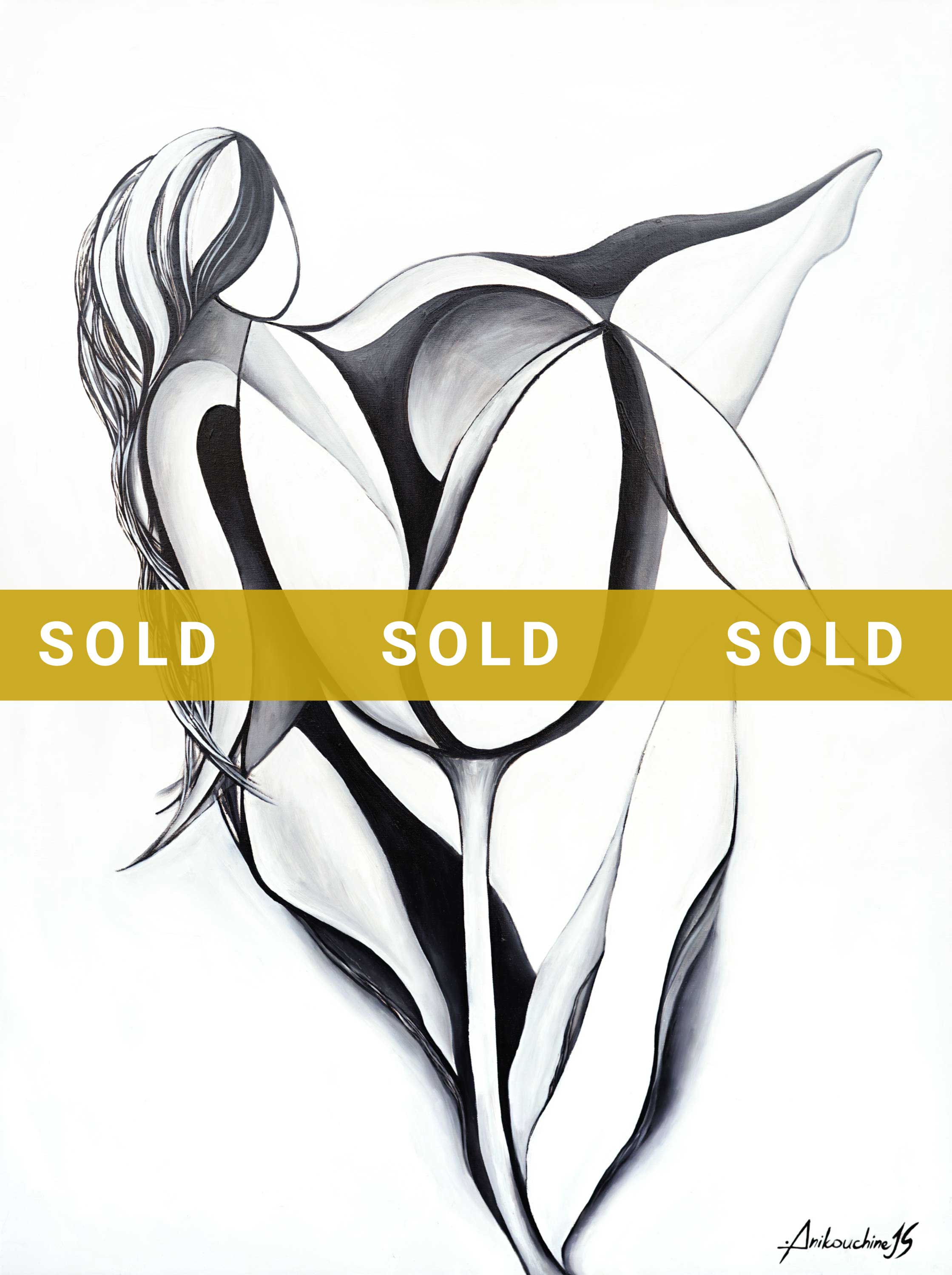 Tulip blends the elegance of a flower with the softness of the woman figure. At first glance, the central structure resembles a tulip in bloom, elongated petals opening with graceful curves. Yet within these contours, the viewer also discovers the figure of a woman: her hair, flowing like roots and her back arched, suggesting a profound connection between growth, identity and beauty. Her body seamlessly merging with the petals of the flower, symbolizing femininity, fragility and strength.This painting conveys the idea of woman as nature: unfolding, vulnerable, and beautiful, yet rooted in quiet power. A celebration of the deep connection between nature and the essence of woman.